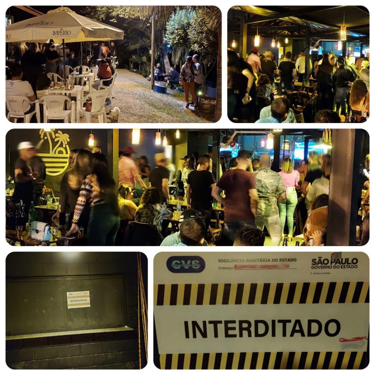 A primeira interdição ocorreu em um bar de grande movimentação de pessoas que fica na Avenida Brasil, além de não cumprirem com as normas determinadas pelo Plano São Paulo para conter o coronavírus, havia também falta de limpeza e higienização.