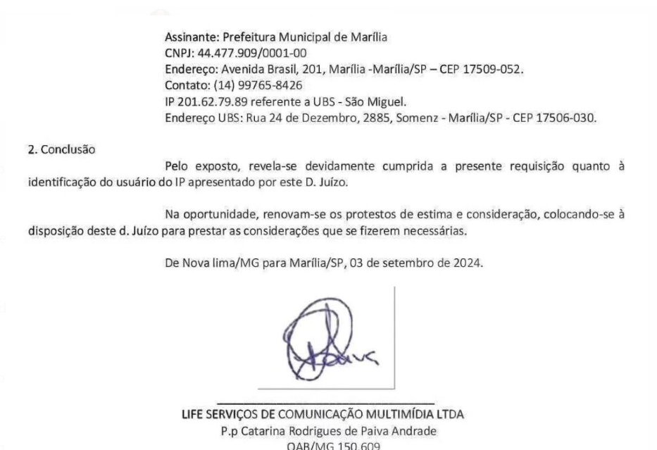 Em uma reviravolta significativa, a Justiça descobriu que um perfil falso nas redes sociais, que vinha atacando João Pinheiro e sua esposa, tem ligação direta com a Prefeitura de Marília. A revelação foi feita em um documento legal que identificou o endereço IP vinculado ao perfil malicioso, apontando para um local associado à administração municipal.