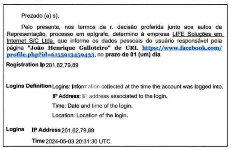 O caso está sendo conduzido pelo escritório de advocacia do advogado Eduardo Gaio, que representa João Pinheiro na busca pela verdade. Segundo informações apuradas, o próximo passo da investigação será identificar os responsáveis por operar o perfil fake, levando à descoberta dos dados pessoais dos criminosos envolvidos.