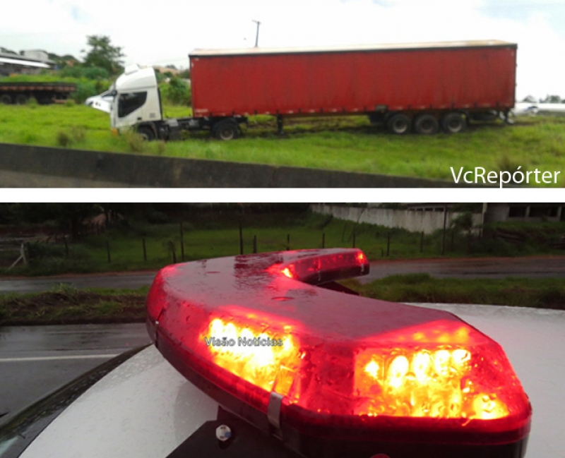 O motorista de uma carreta perdeu o controle e acabou caindo em uma vala próximo ao Golden Palace, no Distrito de Lácio, na manhã desta terça-feira, 24. Segundo testemunhas chovia forte, sendo que o asfalto molhado pode ter contribuído para o acidente.