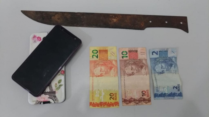 Após buscas os policiais localizaram e prenderam o acusado. Antes de fugir, ele dispensou o facão, no entanto, a vítima viu onde a arma foi jogada e informou à Polícia Militar que a recuperou.