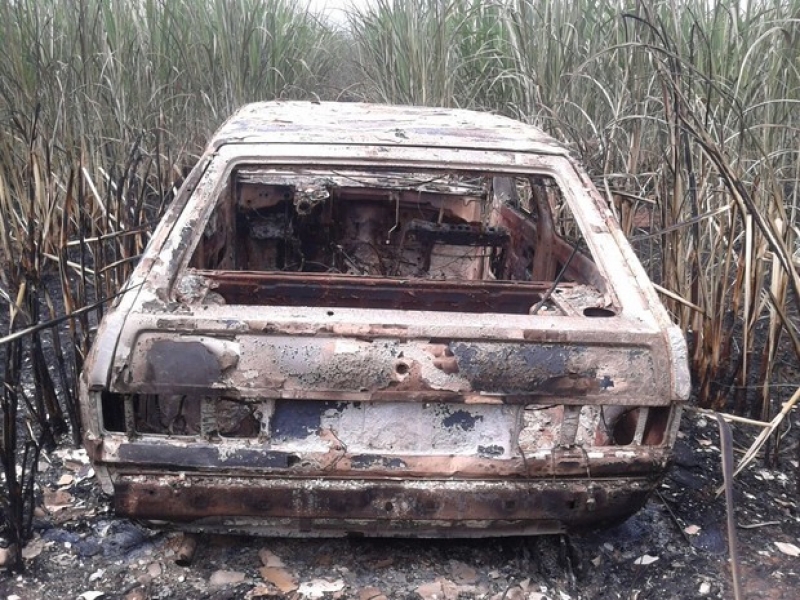 O canavial em volta do veículo também foi atingido. A polícia ainda procura pelos dois suspeitos que conseguiram fugir.