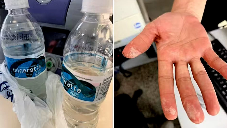 A vítima informou que as garrafas estavam na geladeira da sala de reuniões do local de trabalho e, logo após dar os primeiros goles, sentiu um gosto estranho. Logo depois vieram os sintomas de intoxicação.