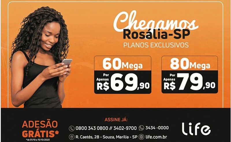 Imperdível é a promoção de chegada da Life em Rosália: moradores do distrito estão isentos da taxa de adesão. Esta promoção vai até quinta-feira, dia 15 de outubro.