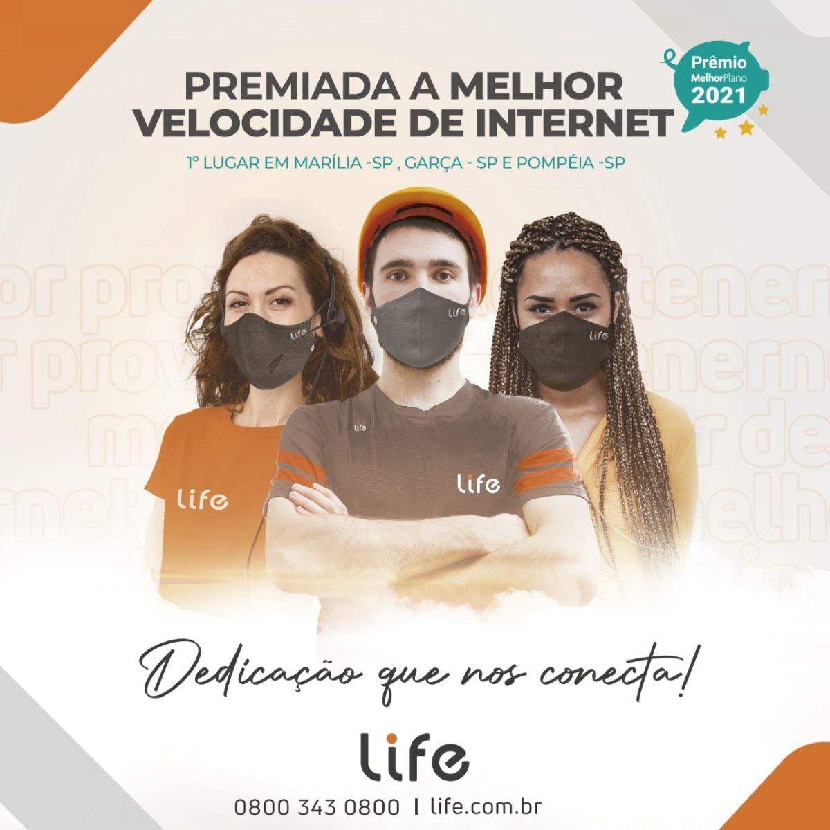 A Life conquistou reconhecimento em três de suas principais cidades de operação: Pompeia, Garça e Marília. Através do ranking de pesquisa isenta realizada pelo programa Melhor Plano, que com uma metodologia bem criteriosa avalia as operadoras de internet, HDTV e telefonia do Brasil, a Life recebeu o título de empresa com a melhor velocidade de internet banda Larga de Marília, Garça e Pompeia.