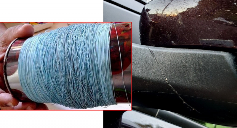 A linha havia enroscado no retrovisor do lado esquerdo, chegando a cortar o plástico e também riscar a pintura. Alisson recolheu a linha e na noite desta segunda-feira esteve na base da Polícia Rodoviária Estadual, em Marília, onde registrou boletim de ocorrência.