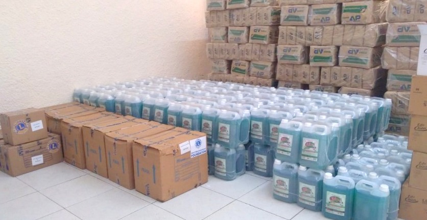 O Lions Clube divulgou um balanço das doações de toneladas de material de higiene para combate ao coronavirus. A relação de milhares de itens contém os seguintes produtos: água sanitária, álcool gel, sabonete, máscaras TNT, mascaras acrílicas, papel toalha e luvas cirúrgicas.