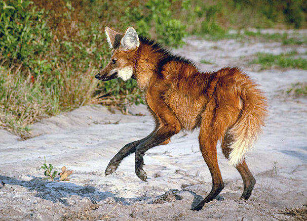 O lobo-guará, também conhecido como lobo-de-crina ou lobo-vermelho, é o maior canídeo da América do Sul.