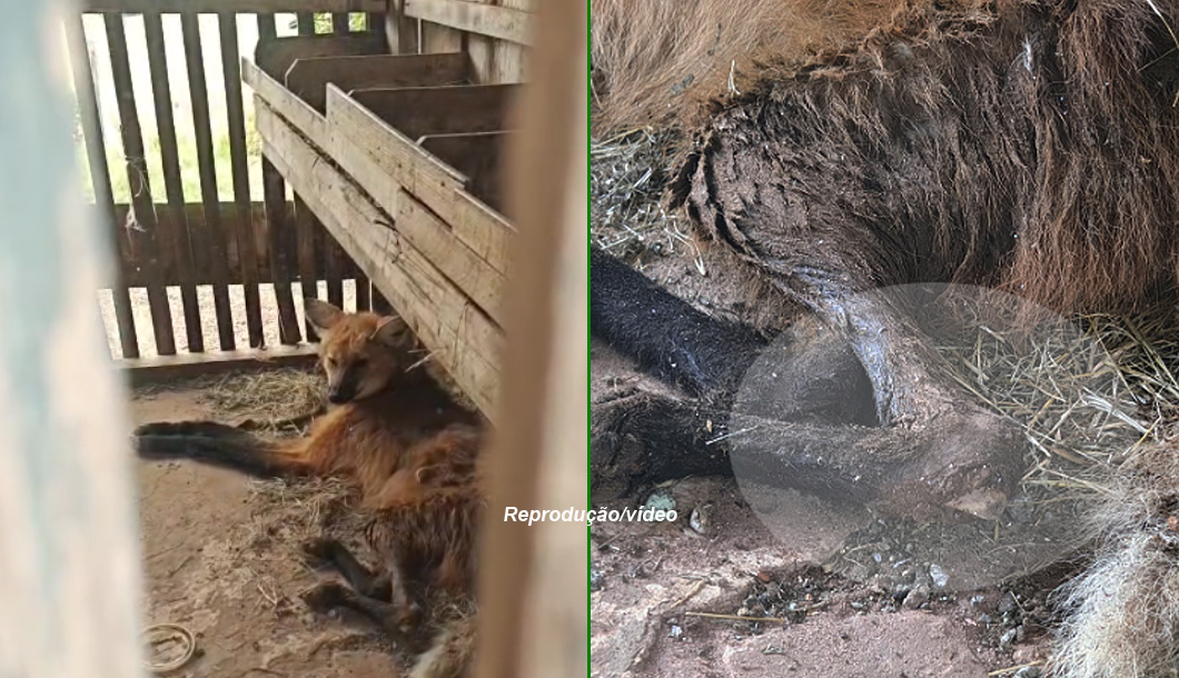 O lobo-guará estava com uma das patas com fratura exposta, provavelmente vítima de atropelamento.