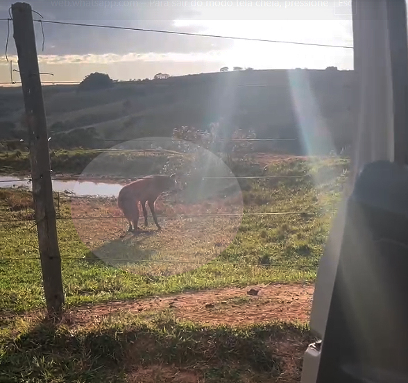 O dono do sítio, ao se deparar com o lobo (foto) e perceber que estava bastante debilitado (tudo indica atropelado na BR-153 ou em alguma estrada municipal), conseguiu levá-lo até o galinheiro que serviu de refúgio.