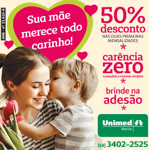 Para os novos beneficiários que aderirem ao plano, será oferecido um vale presente no valor de R$ 80,00, para compra de produtos na Farmácia Unimed Marília, como dermocosméticos, perfumes e maquiagens. Uma forma de agradecer aquelas que sempre cuidaram de nós, com amor e carinho.