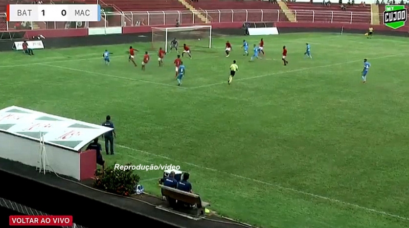 Lance do primeiro gol da partida, marcado pelo Batatais