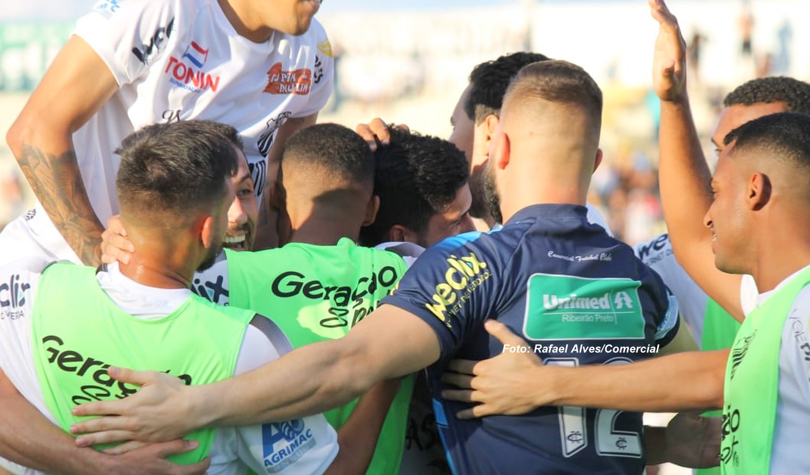 Jogadores do Comercial comemoram mais um gol contra o MAC