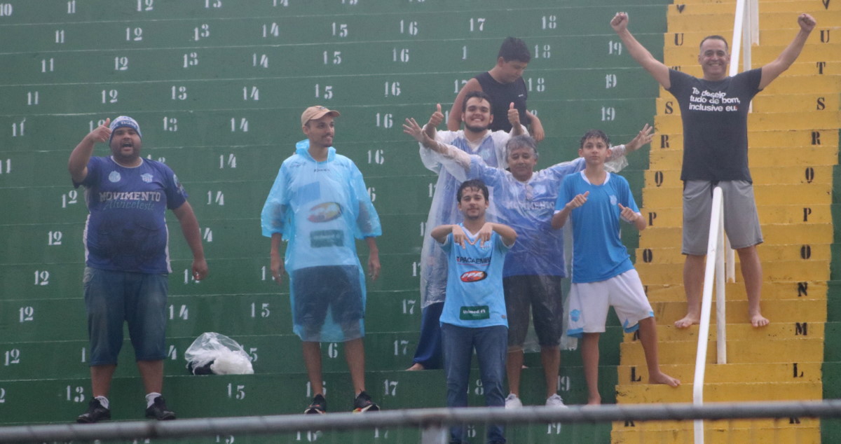 Debaixo de muita chuva, alguns torcedores do MAC tentam empurrar o time. Faltou pouco para o empate.
