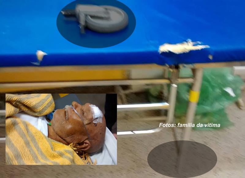 Os familiares conseguiram fotografar a maca quebrada, o seu Otávio com o ferimento e também um outro paciente numa maca que estaria encostada no balcão porque também estaria quebrada.