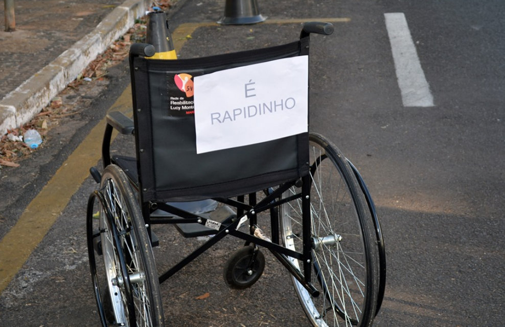 Cadeiras de rodas serão colocadas em vagas rotativas de veículos, com o intuito de ilustrar a imprudência dos motoristas que ocupam as vagas destinadas a pessoas com mobilidade reduzida e a idosos.