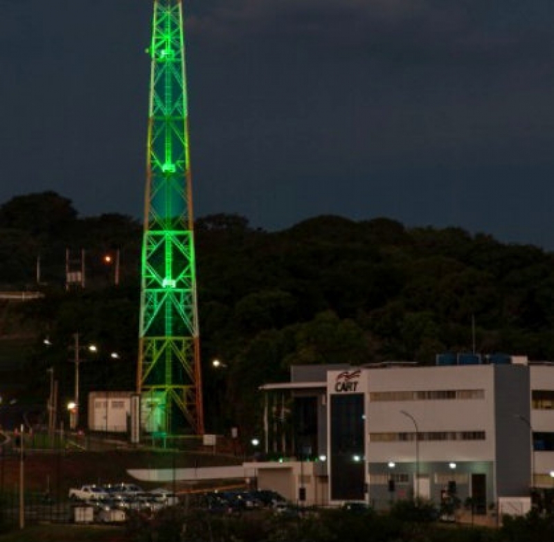 A torre de comunicação da Concessionária ganhou o projeto e está iluminada por 10 projetores de 400 watts, cada.