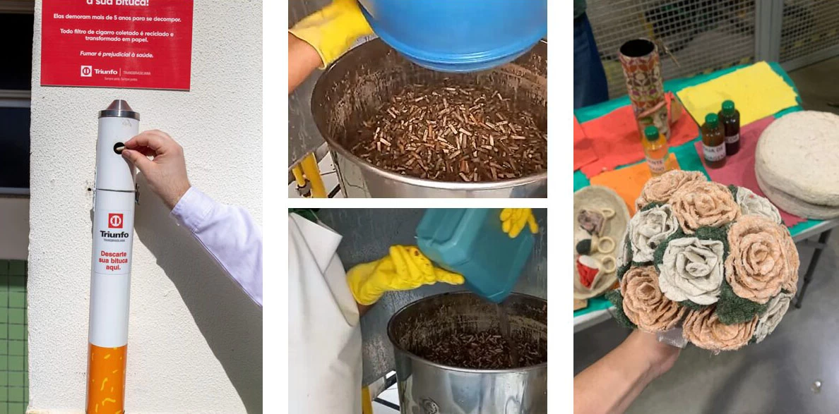 A cada dois meses, todos os filtros descartados são recolhidos e reciclados, passando por um processo químico em que se transformam em artesanato, papel, entre outros itens.