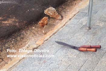 Mas, no meio do caminho foi cercado possivelmente por mais de uma pessoa e agredido com o próprio instrumento que usaria para atacar os desafetos. A vítima levou vários golpes no peito e morreu no local. O corpo foi levado ao Instituto Médico Legal e neste momento a perícia está no local.