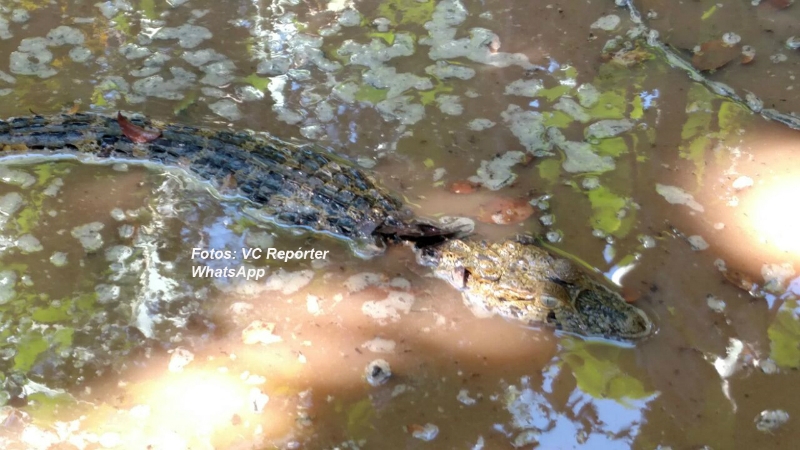 No local, foram feitas algumas "curvas de nível" (espécie de buracos para reter água) e, com a chuva de ontem, o animal aproveitou a poça para descansar. Por volta das 10h foi "descoberto" e deu um susto muito grande dos moradores já que estava a cerca de 20 metros da casa.