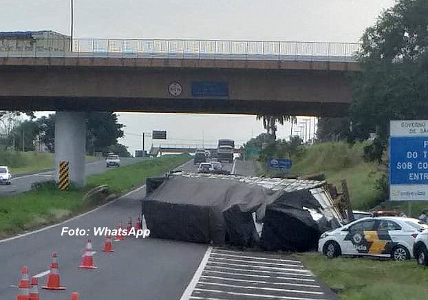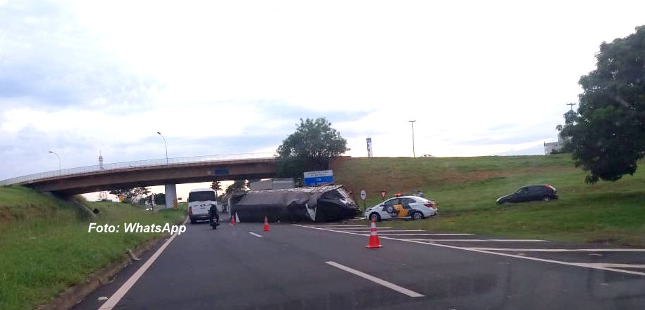 O acidente ocorreu por volta das 7h30. O veículo seguia no sentido interior-capital e, por motivos que ainda estão sendo apurados pela Polícia Rodoviária Estadual, o condutor perdeu o controle e tombou. A carga não chegou a se espalhar, mas houve vazamento de combustível.