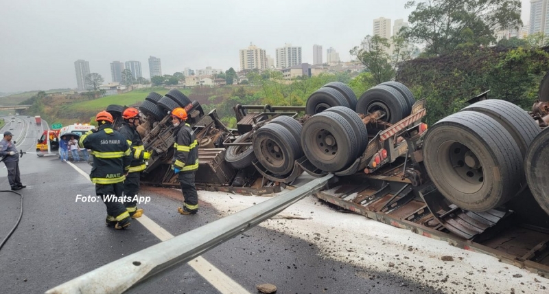 A carreta estava transportando ureia granulada e, como a carga ficou espalhada pela ribanceira, o Corpo de Bombeiros acionou a Cetesb que irá avaliar possíveis danos ambientais. Também houve vazamento de combustível.
