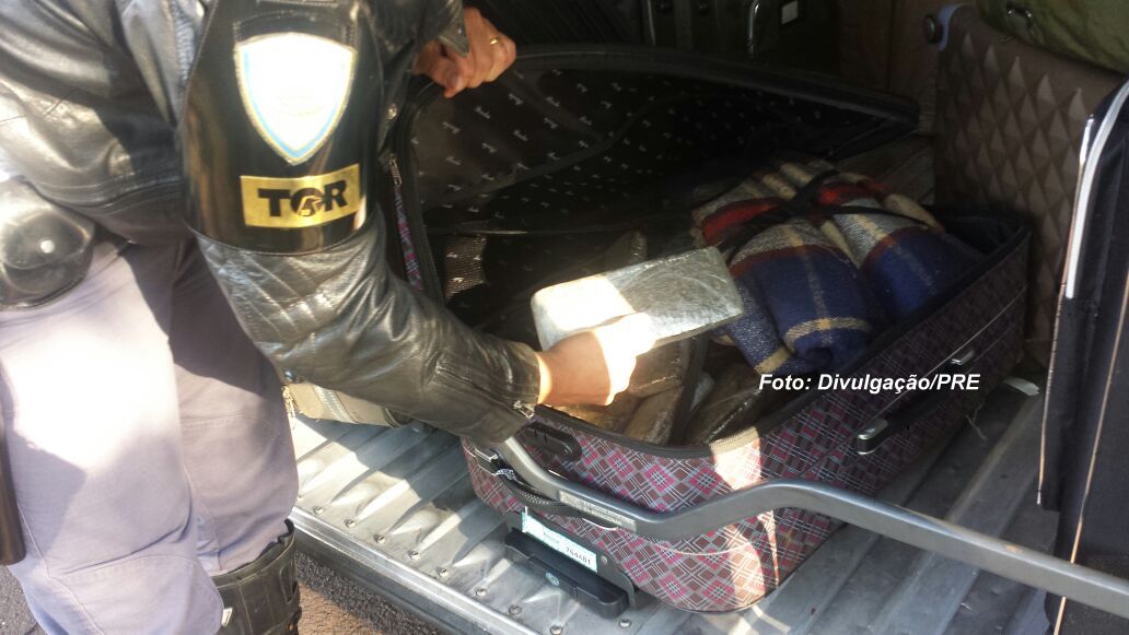 A mala com a droga estava no bagageiro do ônibus.