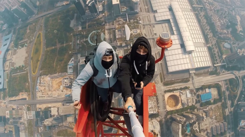 Para chegar ao topo do prédio, os dois invadiram a construção durante a noite e dormiram por lá. De manhã, eles acordaram e foram filmar a cidade a partir de cima com os primeiros raios do Sol. A pior parte para o expectador é quando eles começam a escalar o guindaste que fica no topo do edifício. Lá em cima, eles tiraram uma selfie.