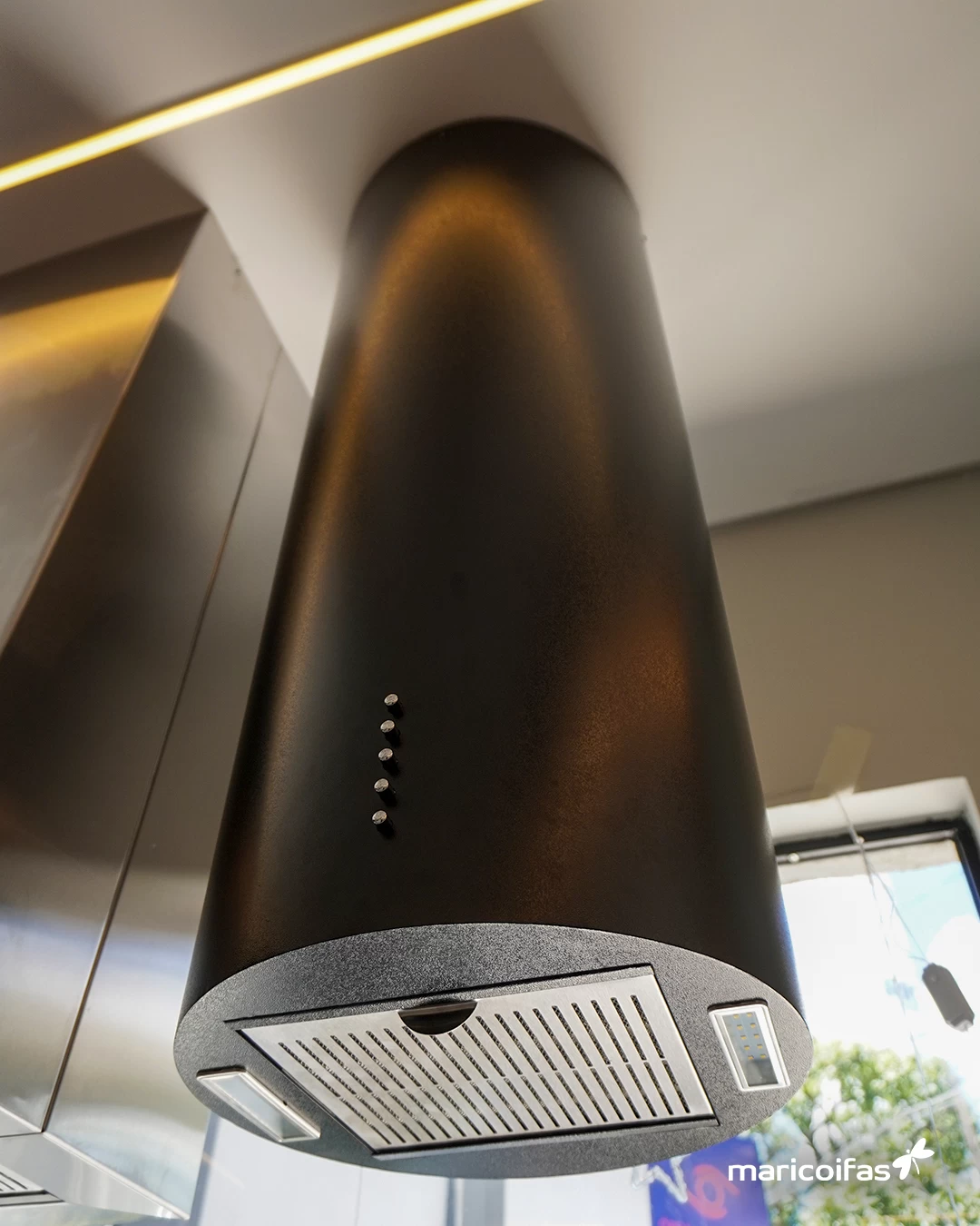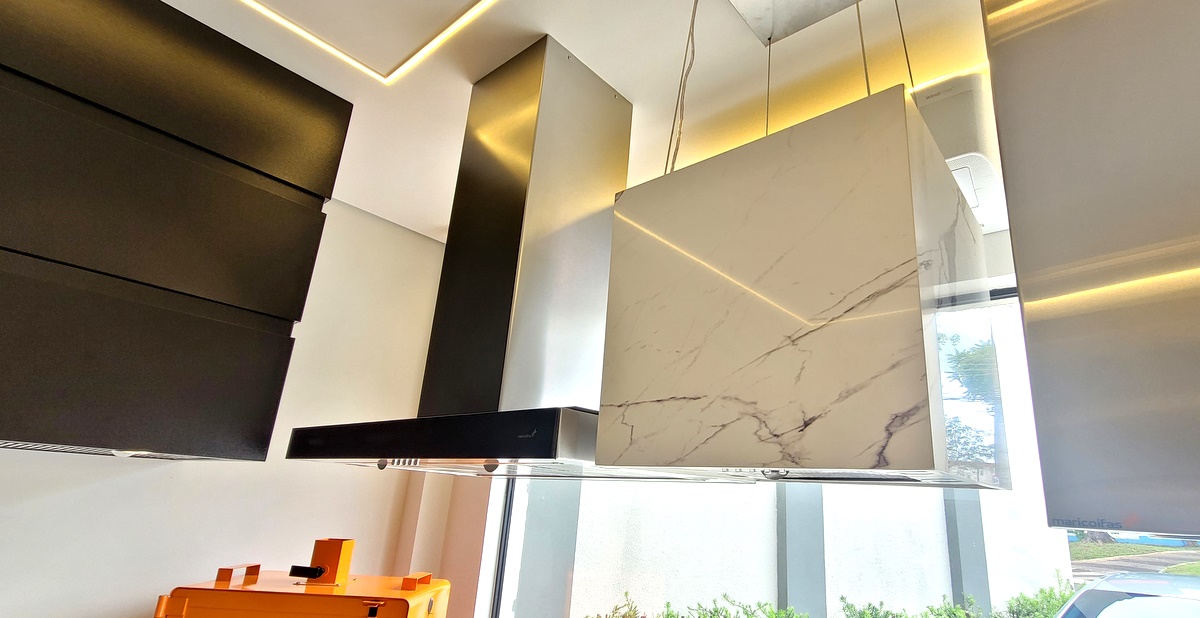 Coifa de ilha com revestimento em acrílico e coifa slim (automatizada com alexa): algumas das novidades tecnológicas da Maricoifas.
