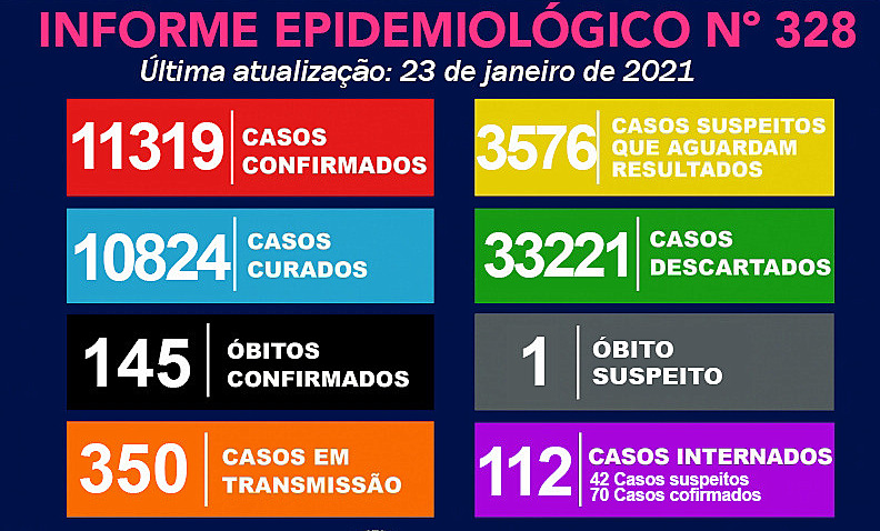 O novo óbito registrado hoje é de um idoso de 83 anos, portador de doença crônica câncer de próstata com metástase. Ele iniciou sintomas no dia 23 de dezembro, como febre, tosse, astenia e inapetência.