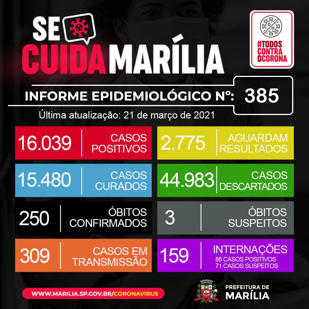 Neste domingo, a cidade superou a marca de 16 mil casos positivos (são 16.039), com 309 pessoas ainda em período de transmissão. São 159 pacientes internados, dos quais 88 com exames positivos.
