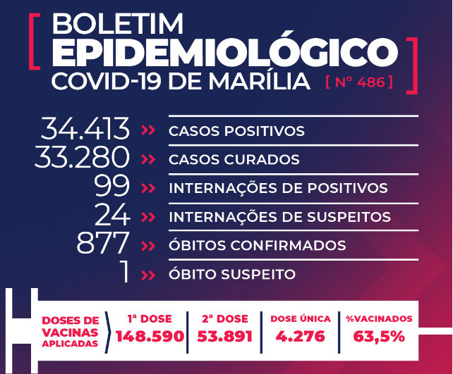 A Secretaria Municipal da Saúde, confirmou na manhã desta quinta-feira, dia 29 de julho, mais três mortes por Covid-19, chegando a 877 óbitos pela doença no município.