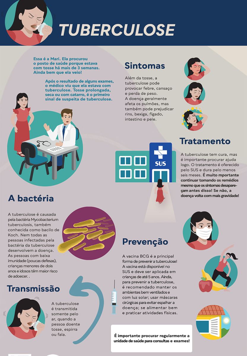 É importante salientar que o paciente não necessariamente precisa apresentar todos os sintomas citados. As unidades realizam o exame, uma vez confirmada a tuberculose - doença que tem cura - o tratamento é oferecido através da rede pública de saúde, que também fornece medicamentos.