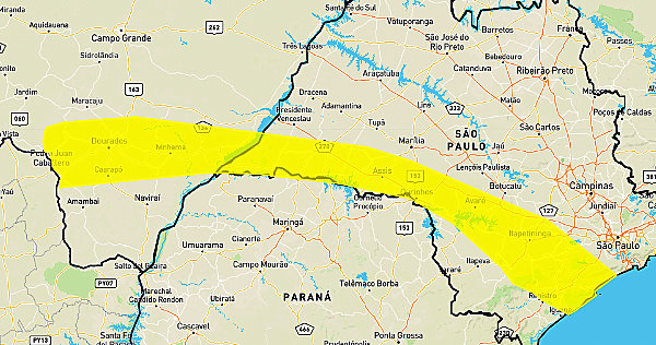 No caso da faixa amarela, as áreas afetadas incluem: Águas de Santa Bárbara, Agudos, Alvinlândia, Assis, Avaré, Bernardino de Campos, Borá, Botucatu, Campos Novos Paulista, Cândido Mota, Cerqueira César, Chavantes, Cruzália, Echaporã, Espírito Santo do Turvo, Florínea, Ibirarema, Ipaussu, João Ramalho, Lucianópolis, Lupércio, Lutécia, Maracaí, Marília, Ocauçu, Oscar Bressane, Ourinhos, Palmital, Paraguaçu Paulista, Pedrinhas Paulista, Platina, Quatá, Ribeirão do Sul, Salto Grande, e Tarumã.