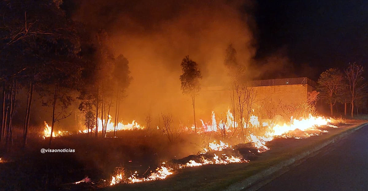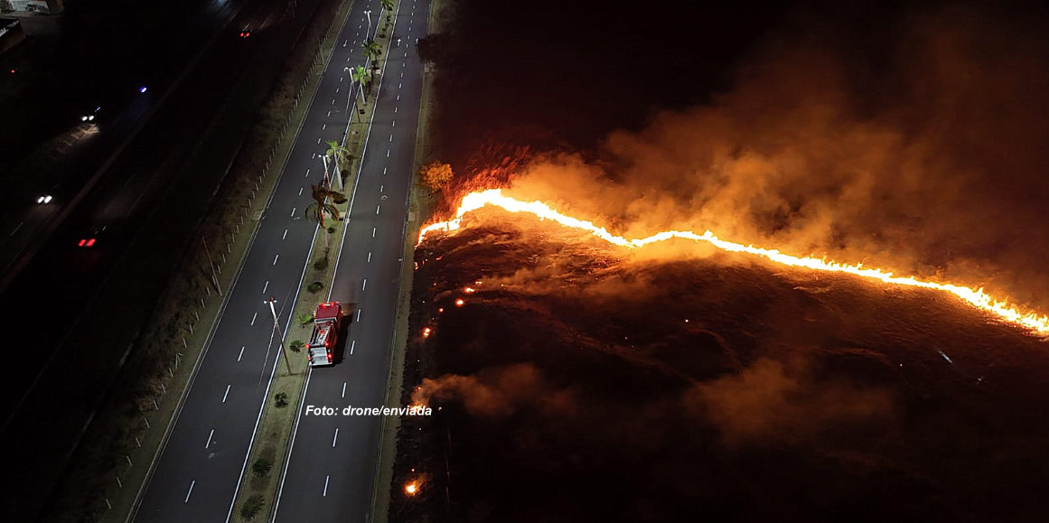 Queimada que atingiu área ao lado da via expressa Sampaio Vidal.