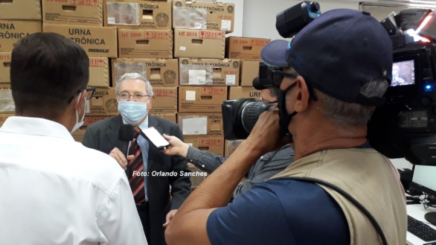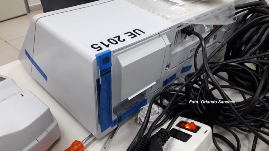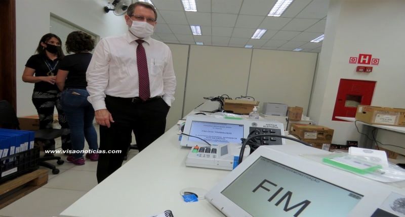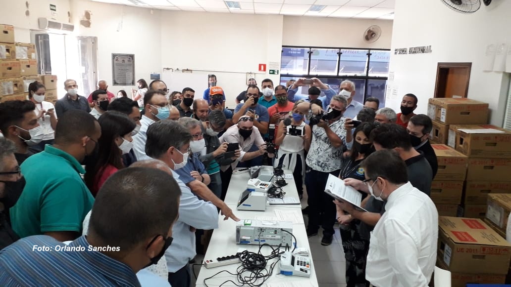 Cerimônia de teste das urnas nesta tarde no Cartório Eleitoral. Equipamentos foram lacrados pela manhã.