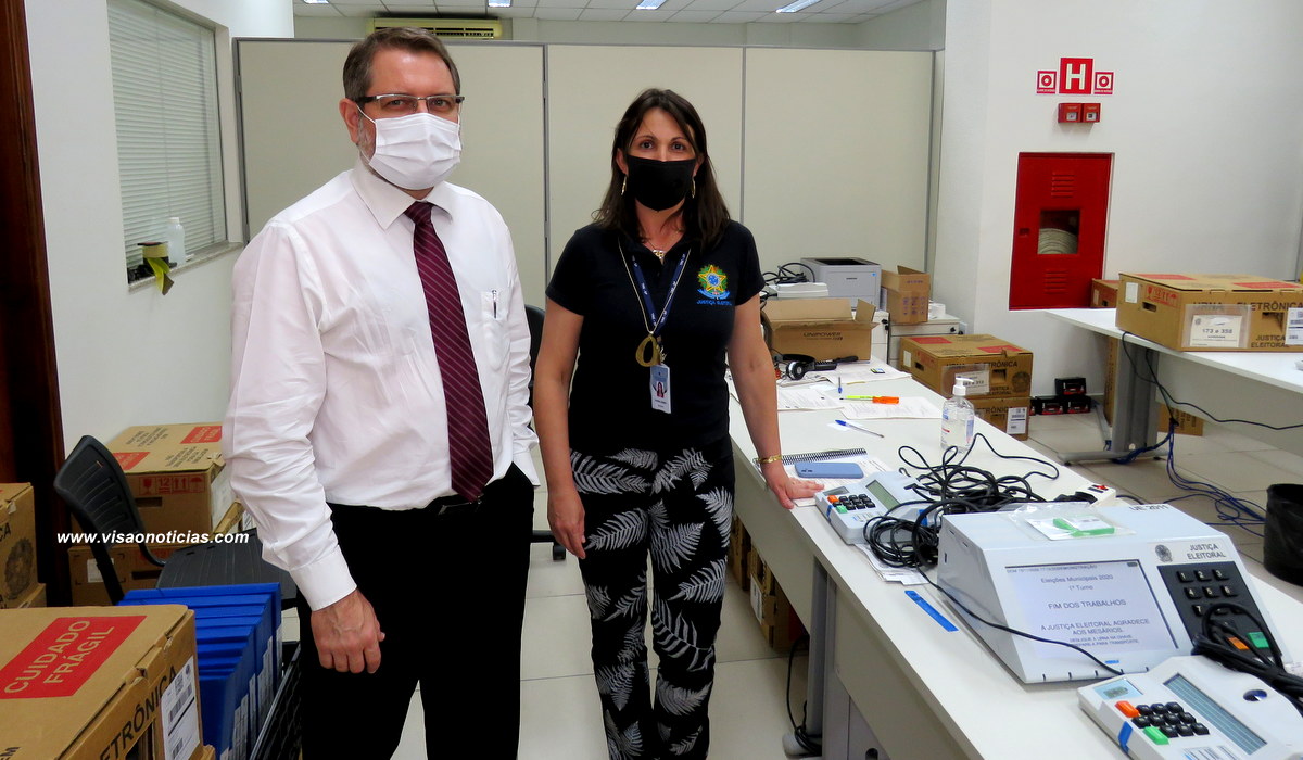 Juiz eleitoral Luis Cesar Bertoncini e a chefe do Cartório, Karina Marcussi Gomes.