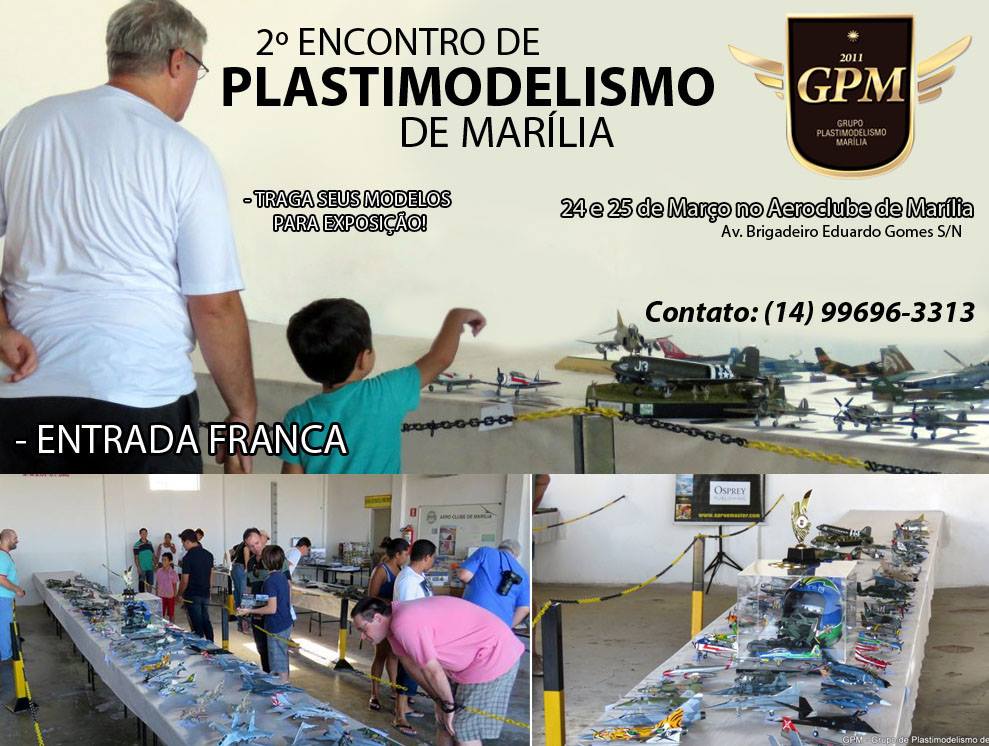 O GPM - Grupo de Plastimodelismo de Marília realiza neste fim de semana (sábado e domingo, das 9 às 17h), o 2º Encontro de Plastimodelismo de Marília que vai reunir praticantes de todo o Brasil. O evento será realizado no Aeroclube e aberto à população, que poderá conhecer um pouco mais sobre essa atividade que a cada