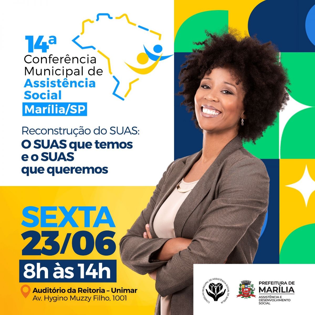 A Secretaria Municipal de Assistência e Desenvolvimento Social de Marília e do Conselho Municipal de Assistência Social (CMAS), preparam a 14ª Conferência Municipal de Assistência Social. O evento será realizado no próximo dia 23 de junho, das 8h às 14 horas, tendo como tema "Reconstrução do SUAS: O SUAS que temos e o SUAS que queremos".