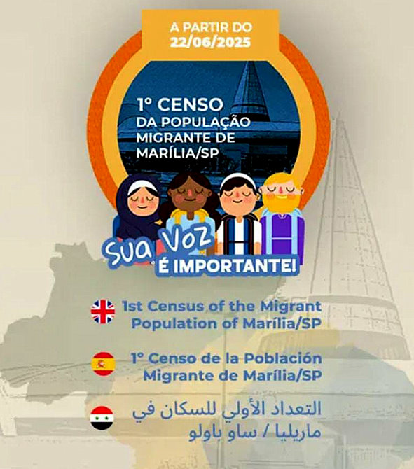 Marília vai realizar o primeiro censo da população migrante do município. O lançamento ocorrerá no próximo dia 22 de junho (domingo), na praça da Emdurb.