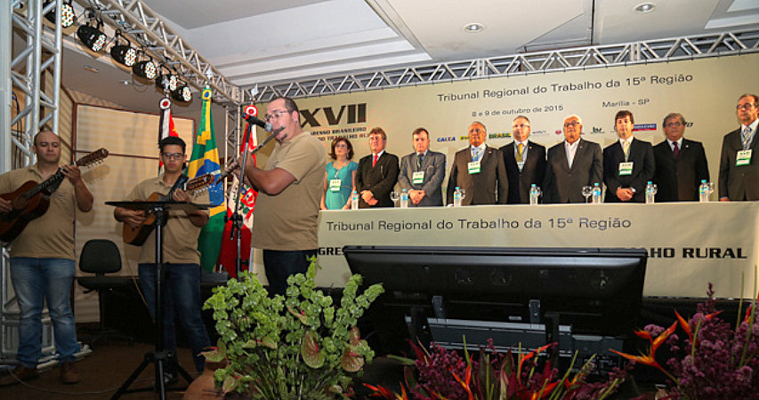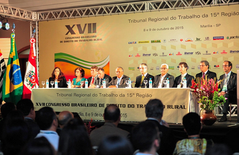 Mais de 500 pessoas acompanharam nesta quinta (8), a solenidade de abertura do XVII Congresso Brasileiro de Direito do Trabalho Rural, promovido pelo Tribunal Regional do Trabalho da 15ª Região, pela Escola Judicial da Corte e pelo Instituto Jurídico de Incentivo ao Estudo do Direito Social (Injieds), no Quality Hotel & Convention Center, em Marília, município da região centro-oeste paulista.