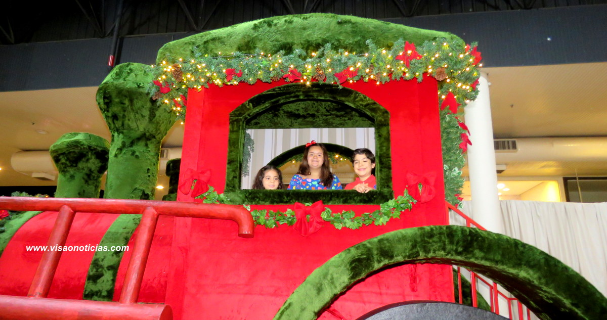 A decoração conta com uma estação de embarque interativa, um trenzinho temático, além de majestosas árvores, presentes, bolas e brinquedos que compõem o cenário. Todo esse projeto ganha mais luz e cor com a iluminação especial na fachada e na área externa do Shopping.