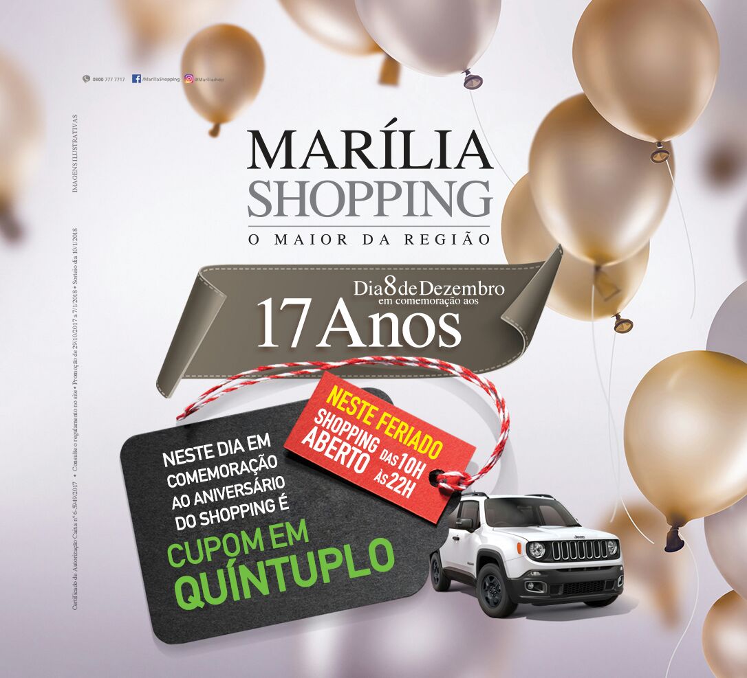 E, por fazer parte da história das pessoas, nesta sexta-feira (feriado), os clientes do Marília Shopping terão cinco vezes mais chances de ganhar um Jeep Renegade 0Km da campanha de Natal já que, durante todo o dia, a cada R$ 150 em compras, valem cupons em quíntuplo para participar.