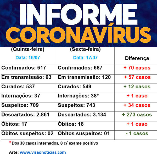 O boletim oficial indica que nas últimas 24 horas a Covid-19 avançou muito, após alguns dias de certa normalidade, inclusive com registrado de redução no número de pessoas em período de transmissão. Agora, são 120 contra 63 no dia de ontem.