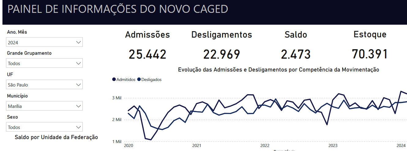 Segundo o Caged, Marília conta atualmente com 70.391 postos de trabalho formais. Para o saldo de 2.473 vagas criadas até agosto, a estatística aponta que foram realizadas 25.442 admissões em todos os setores, com um total de 22.969 trabalhadores demitidos.