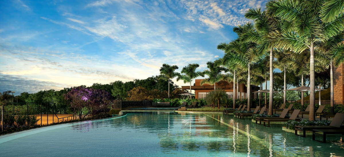 A área de lazer terá vista para o vale e ainda haverá diversas praças distribuídas pelo condomínio. De acordo com a Menin, morar em um resort é possível, sem perder a praticidade e segurança necessárias ao cotidiano.