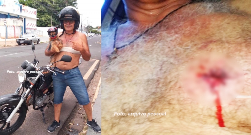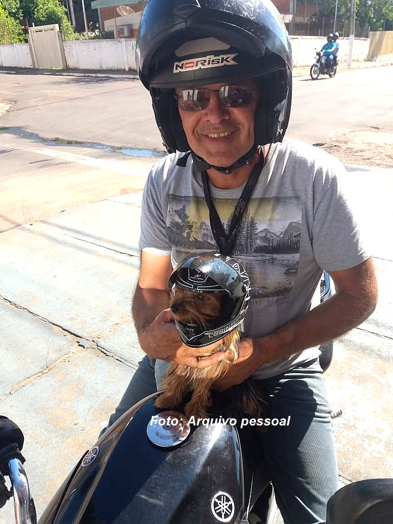 Marcelo sempre passeia com a mascotinha na moto. Desta vez foi vítima da violência.