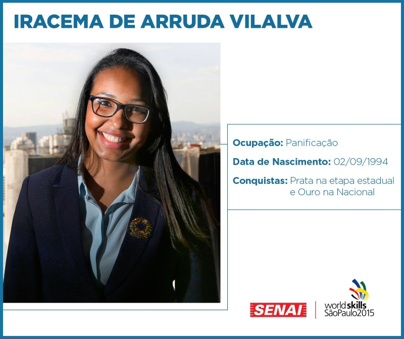 A estudante mariliense Iracema de Arruda Vilalva, da área de Panificação do SENAI-SP, está participando em São Paulo da maior competição de educação profissional do mundo. É a WorldSkills Competition, em sua 43ª edição e que está sendo realizada na capital paulista. Os resultados serão divulgados no domingo à noite.