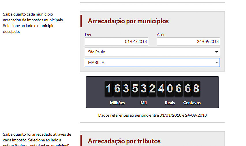 Outros municípios se espelharam na iniciativa e instalaram painéis, como Florianópolis, Guarulhos, Manaus, Rio de Janeiro e Brasília. No portal www.impostometro.com.br, é possível visualizar valores arrecadados por período, estado, município e categoria.