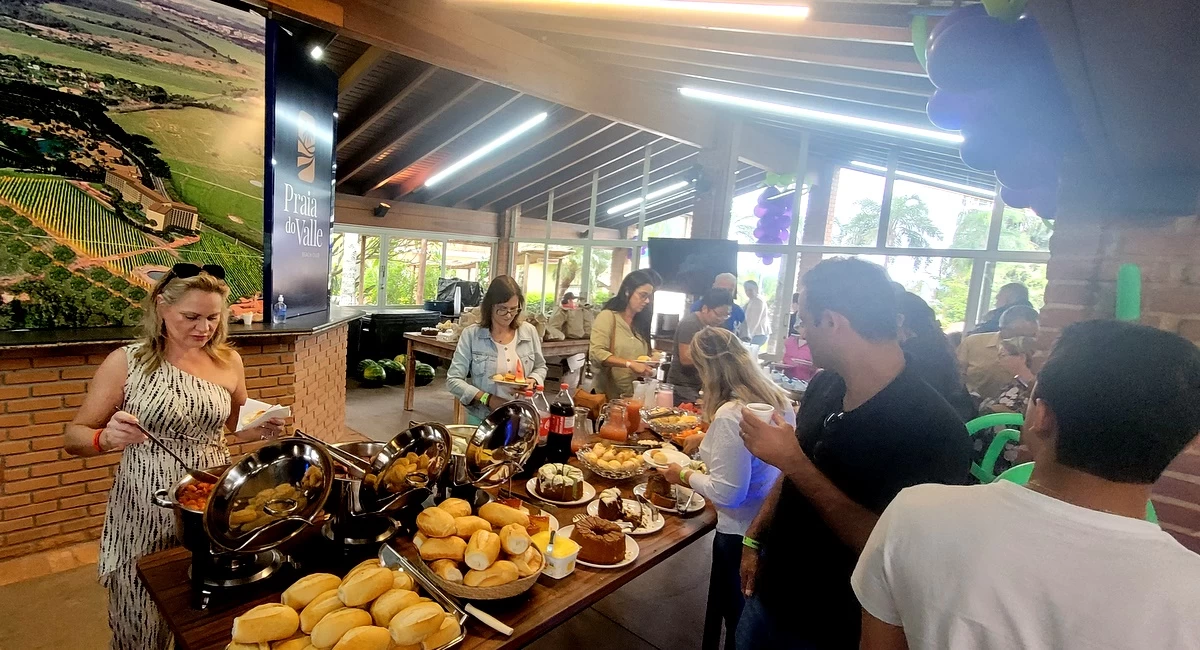 Bastante emocionado, ele fez questão de ser o "guia turístico" de cada um dos grupos de visitantes que fizeram um tour, apresentando a vinícola e o andamento das obras da Praia do Valle, que seguem em ritmo acelerado. Antes, todos participaram de um café da manhã colonial no plantão de vendas do empreendimento.